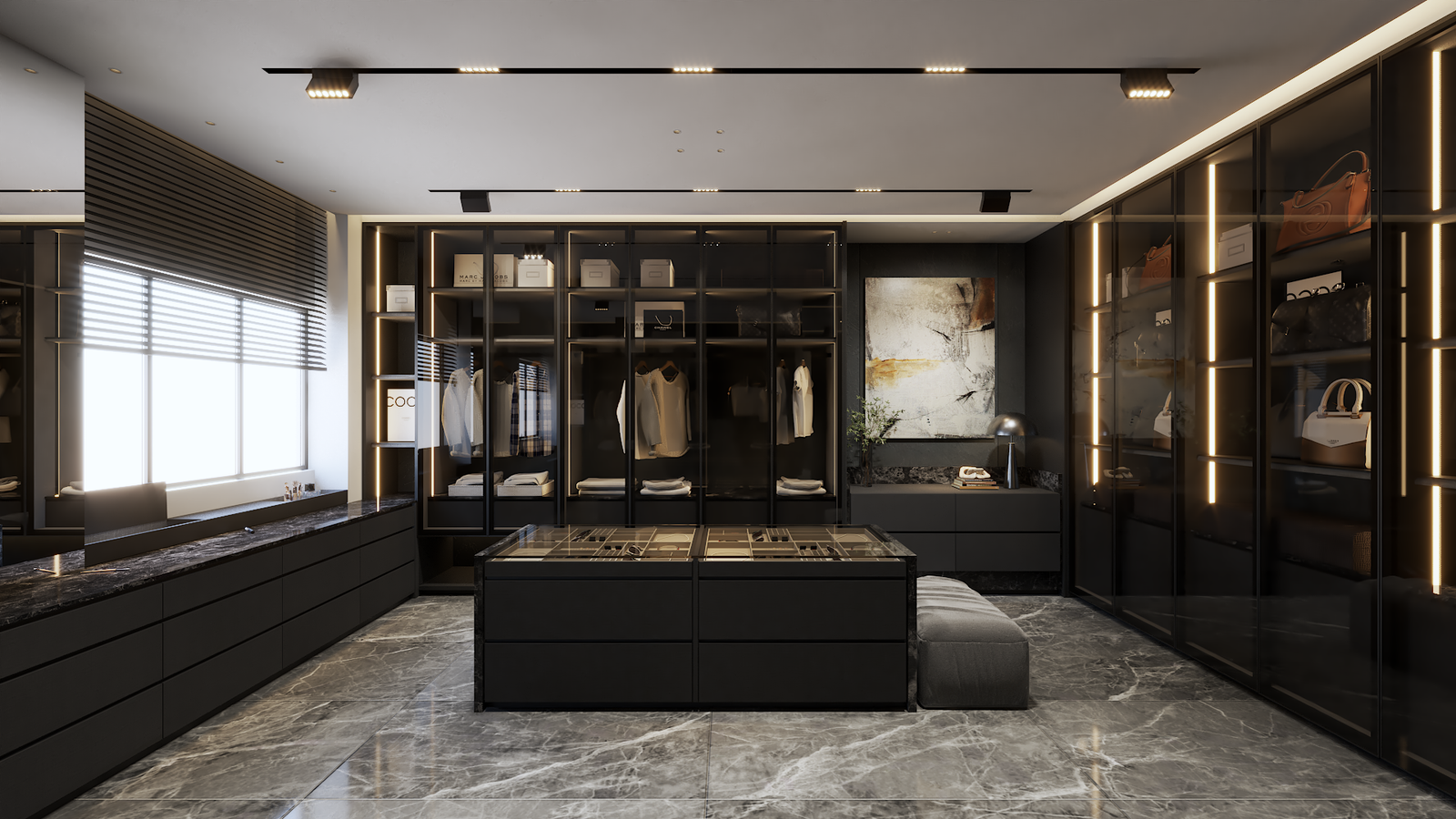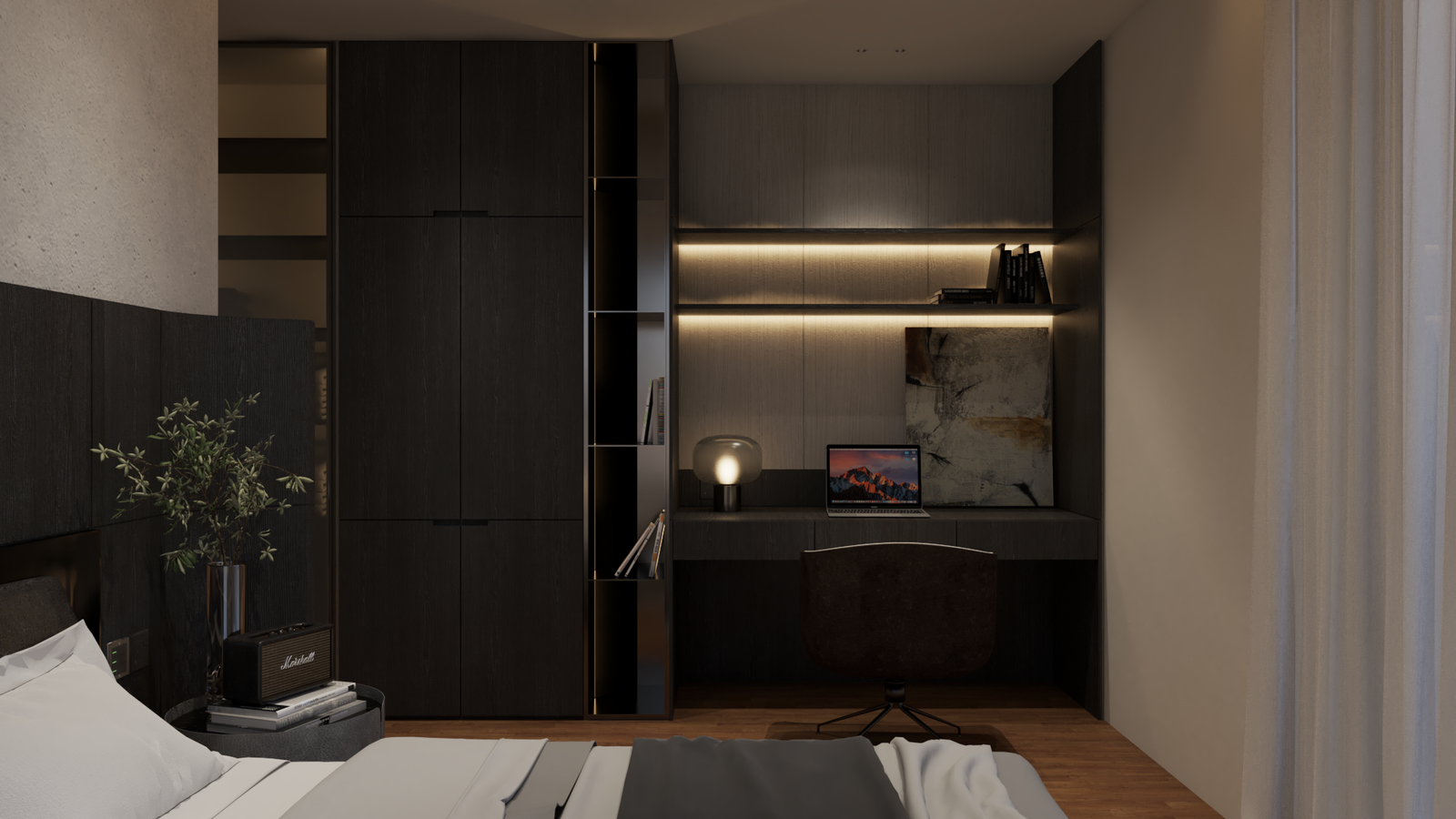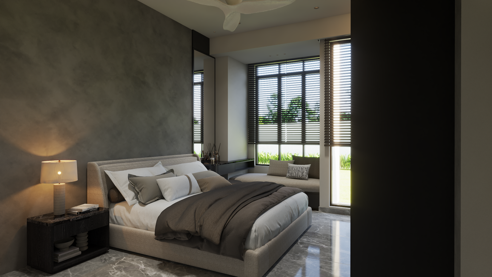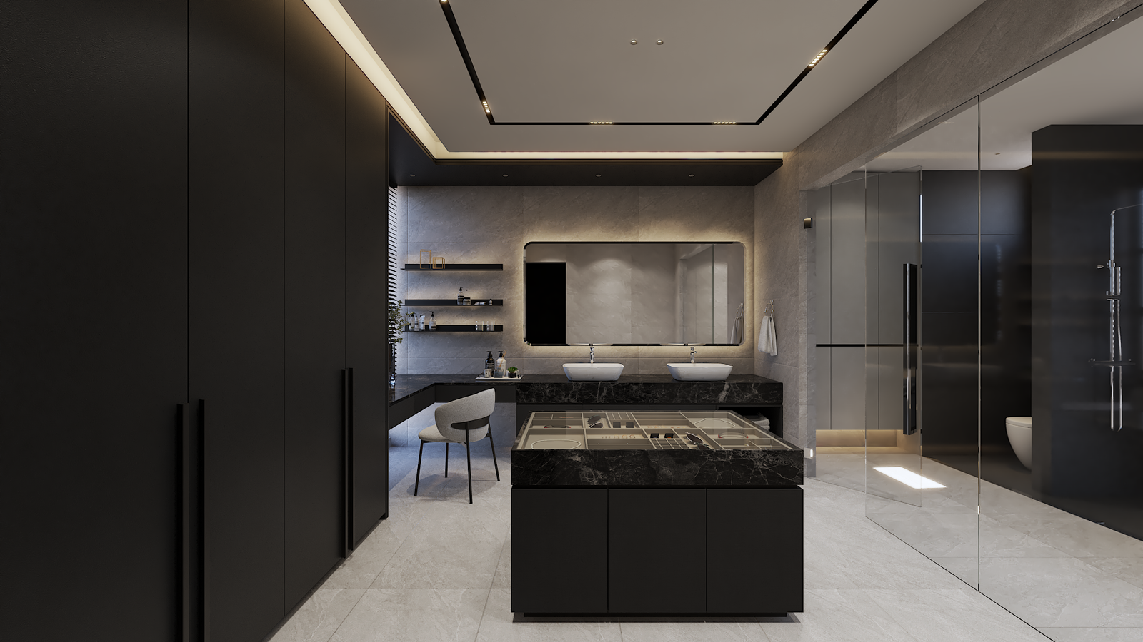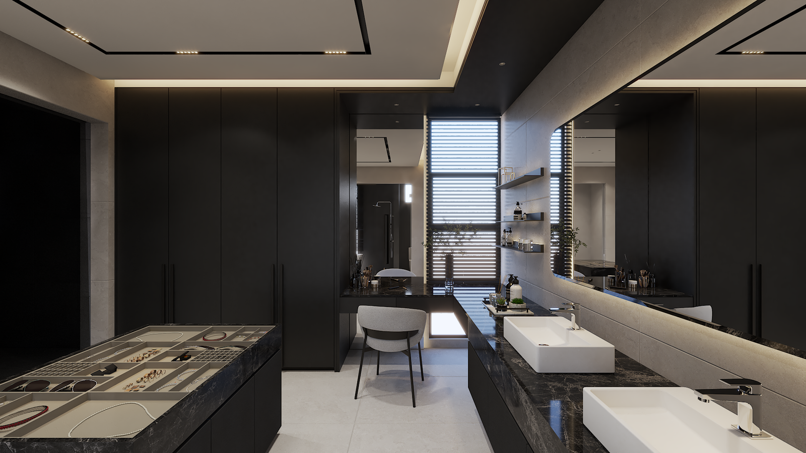 estana centers on balance—between openness and intimacy, elegance and practicality. clean lines and dark–neutral tones establish a timeless minimalism, softened by warm lighting and layered textures.