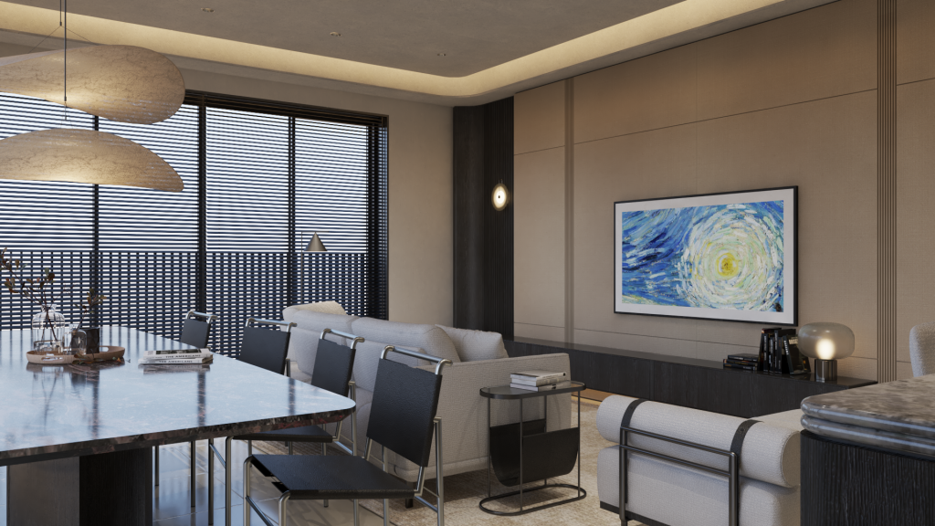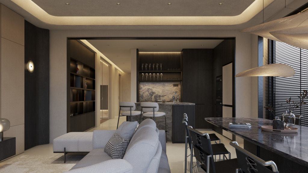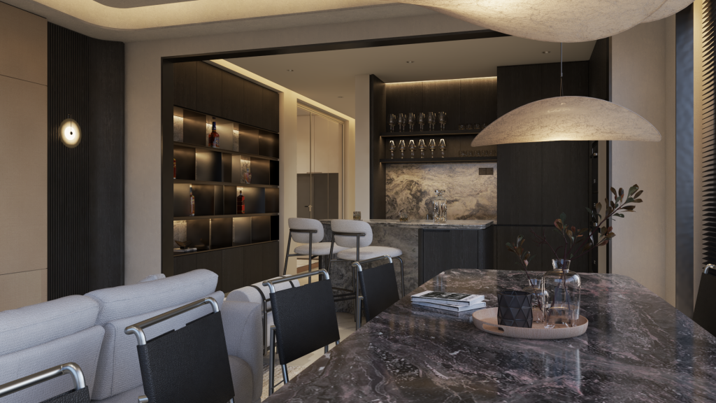 the living and dining spaces highlight openness and flow, encouraging connection, while the bar and lounge introduce intimacy and sophistication. each room reflects a curated balance—modern yet timeless, minimal yet layered—crafting a home that honors daily rituals while elevating them into experiences.